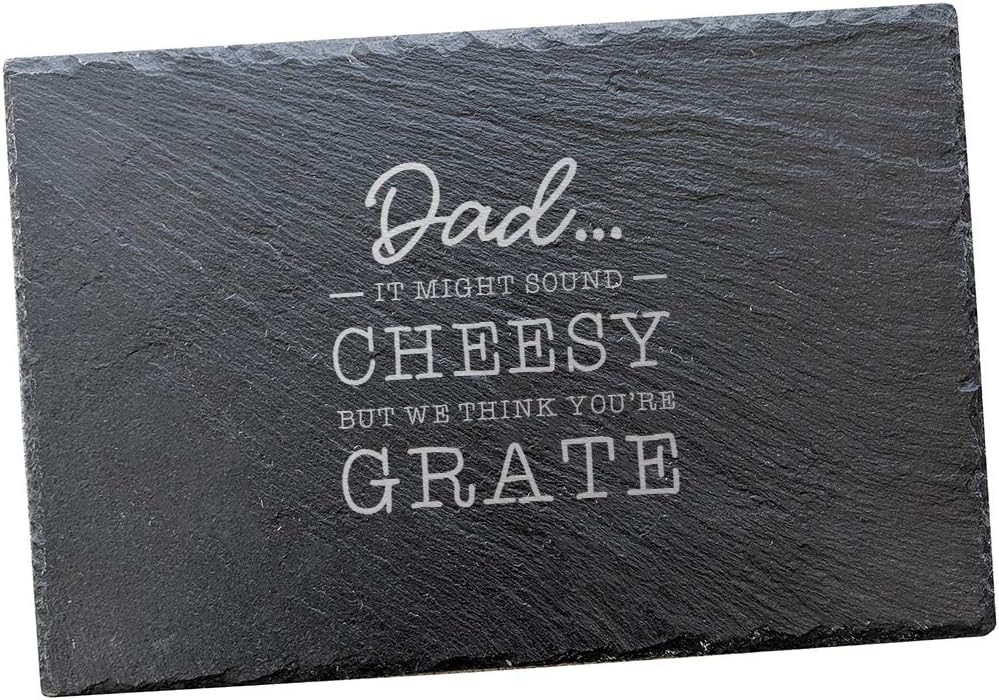 Amazon Com Funny Dad Pun Slate Cheese Board Personalized Dad Gifts From Daughter And Son Joke Idea It May Sound Cheesy But We Think You Re Grate Home Kitchen